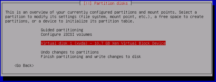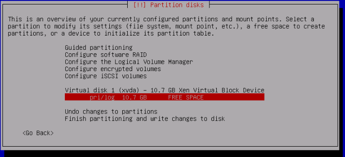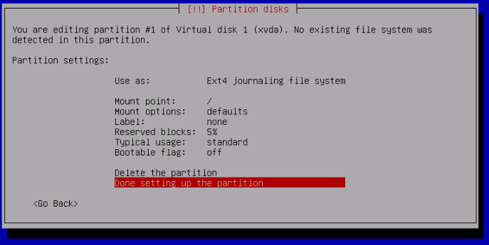 Do not add a swap space if prompted. I.E Do not return to the partition menu.