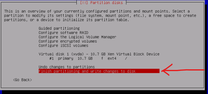 Select "Yes" when prompted with the summary to write the changes to the disk.