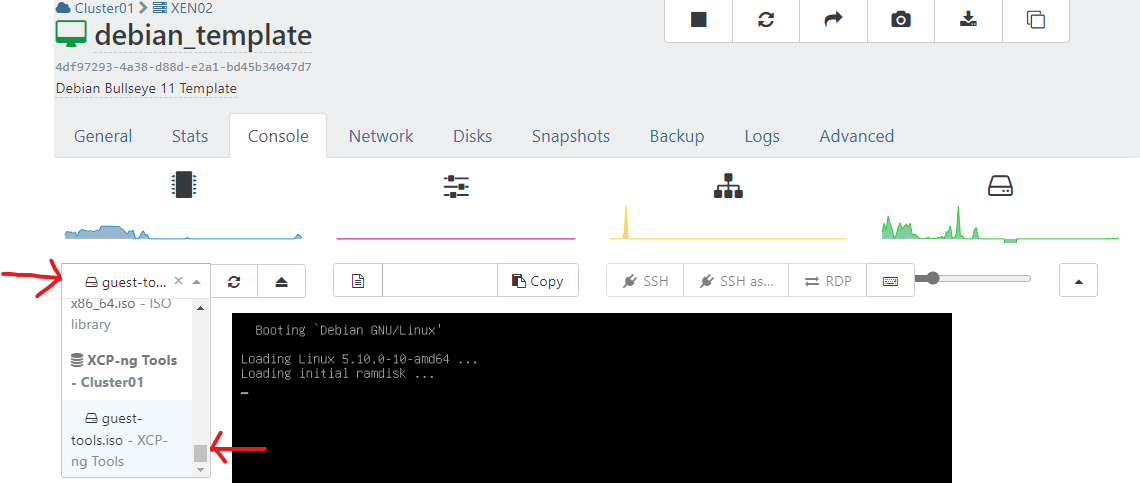 Once the VM has rebooted, Insert the Guest Tools ISO via Xen Orchestra.