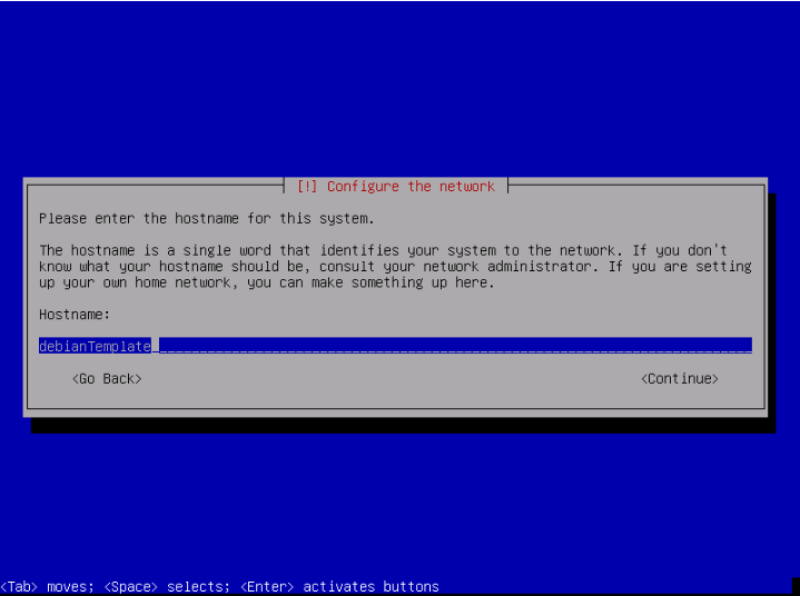 Press the SpaceBar to unselect the "Debian Desktop Environment" and "GNOME" packages and enable the SSH server package and press enter to continue.