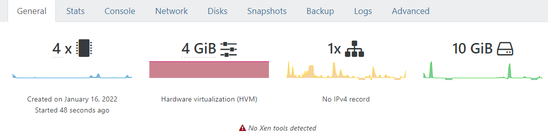 When the VM reboots, it should change from having "No Xen tools detected" and no IP address listed to showing the OS version, IP address and Management agent version